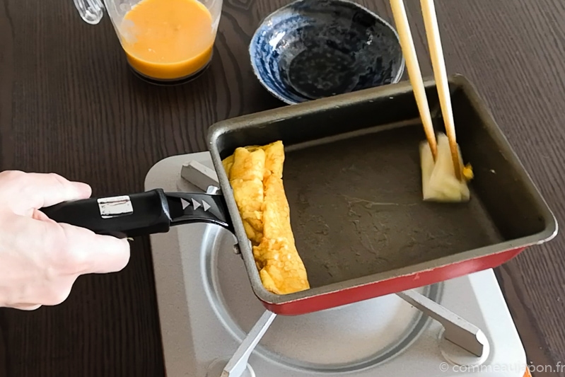 Aussi bonne chaude que froide, cette omelette se retrouve souvent dans les bento, ces panier repas populaires et au dessus de sushi.