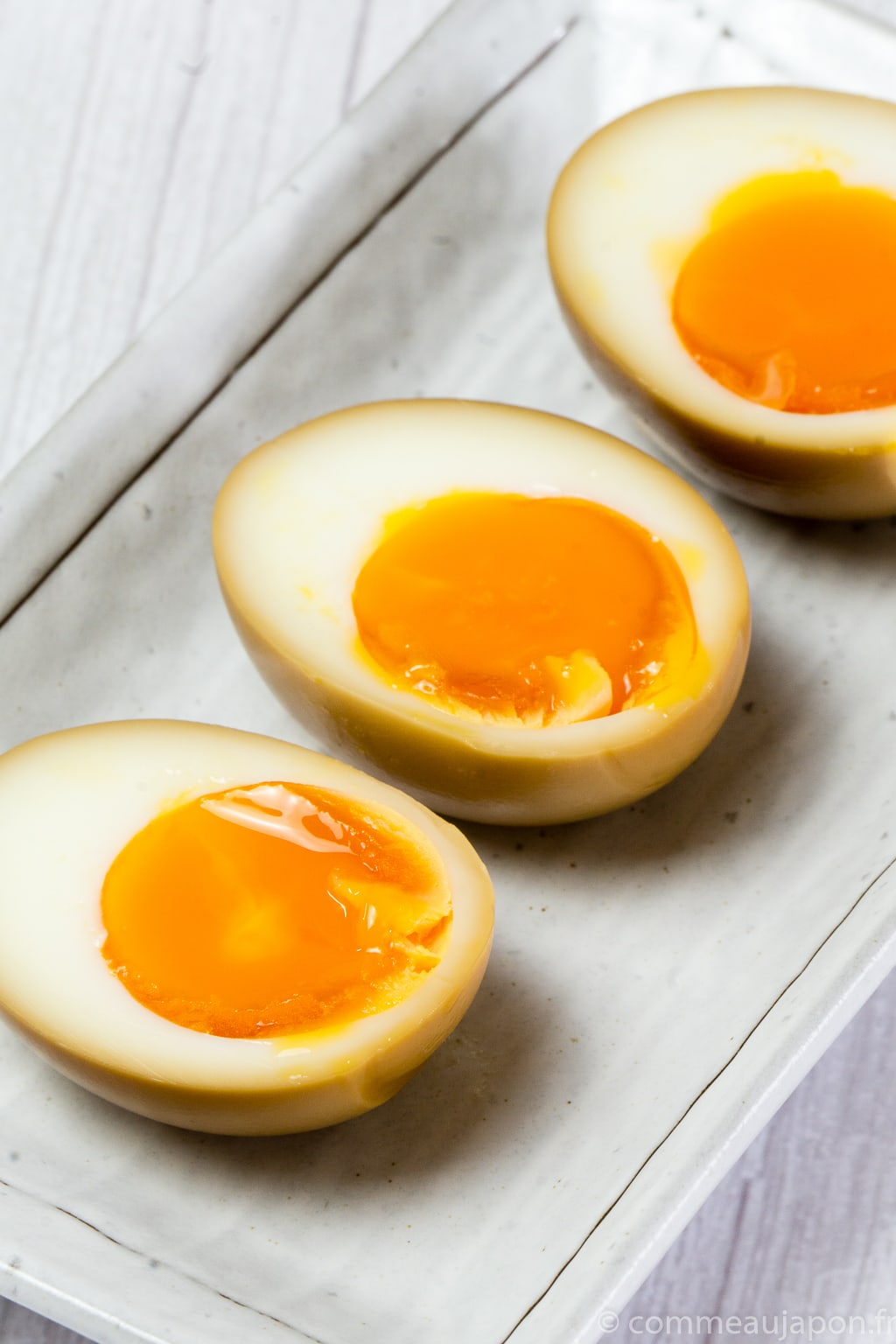 Il existe quantité d’accompagnements différents, sentez-vous libre d’expérimenter! Pour ce bol nous allons faire les classiques : oignon vert, œuf ajitama (les œufs marinés), chashu et des champignons oreilles de Judas.